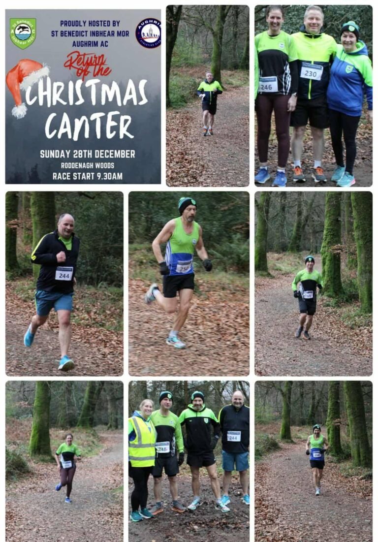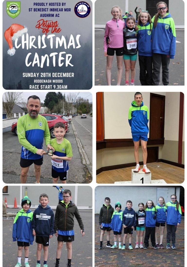 We were delighted to co-host the Christmas Canter event on the 28th alongside Aughrim AC. Well done to Elliot (1st place), Mollie, Maebh, Evan M, Rowan, Harper, and Georgia, who all took on the 2k race. Congratulations to Eoghan, who won the 5k race with Stan 1st Senior Male and also to Slawek, Adrian, Aoife, Philip, and Geraldine. Thank you to those who volunteered on the day also.